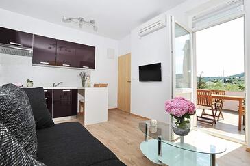 Appartamento può accogliere 4 ospiti. I letti sono disposti nelle camere da letto che sono 1, e nella camera di soggiorno, su 54m2. Gli ospiti hanno a disposizione il proprio terrazzo per godere nelle calde serate estive. Dall'appartamento si gode di una vista sul mare. Si può preparare il cibo utilizzando il barbecue comune.