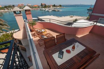 Appartamento può accogliere 4 ospiti. I letti sono disposti nelle camere da letto che sono 2, su 50m2. Gli ospiti hanno a disposizione il proprio terrazzo per godere nelle calde serate estive. Dall'appartamento si gode di una vista sul mare. Si può preparare il cibo utilizzando il barbecue comune.