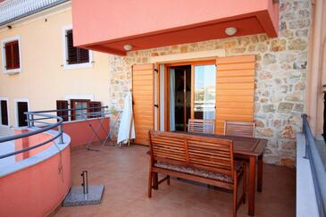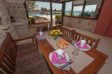 Appartamento può accogliere 4 ospiti. I letti sono disposti nelle camere da letto che sono 2, su 50m2. Gli ospiti hanno a disposizione il proprio terrazzo per godere nelle calde serate estive. Dall'appartamento si gode di una vista sul mare. Si può preparare il cibo utilizzando il barbecue comune.