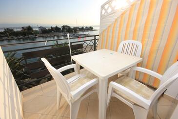 Appartamento può accogliere 5 ospiti. I letti sono disposti nelle camere da letto che sono 2, su 52m2. Gli ospiti hanno a disposizione il proprio terrazzo per godere nelle calde serate estive. Dall'appartamento si gode di una vista sul mare. Si può preparare il cibo utilizzando il barbecue comune.