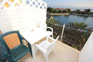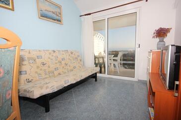 Appartamento può accogliere 5 ospiti. I letti sono disposti nelle camere da letto che sono 2, su 52m2. Gli ospiti hanno a disposizione il proprio terrazzo per godere nelle calde serate estive. Dall'appartamento si gode di una vista sul mare. Si può preparare il cibo utilizzando il barbecue comune.