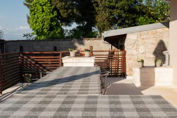 Appartamento può accogliere 5 ospiti. I letti sono disposti nelle camere da letto che sono 3, su 60m2. Gli ospiti hanno a disposizione il proprio terrazzo per godere nelle calde serate estive. Dall'appartamento si gode di una vista sul mare. Si può preparare il cibo utilizzando il barbecue comune.