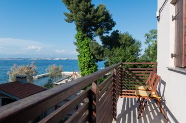 Appartamento può accogliere 5 ospiti. I letti sono disposti nelle camere da letto che sono 3, su 60m2. Gli ospiti hanno a disposizione il proprio terrazzo per godere nelle calde serate estive. Dall'appartamento si gode di una vista sul mare. Si può preparare il cibo utilizzando il barbecue comune.