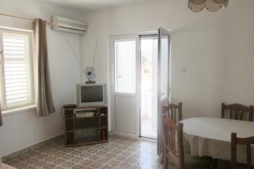 Casa può accogliere 6 ospiti. I letti sono disposti nelle camere da letto che sono 2, e nella camera di soggiorno, su 54m2. Gli ospiti hanno a disposizione il proprio terrazzo per godere nelle calde serate estive. Dalla casa si gode di una vista sul mare. Per il piacere totale e il relax c'è il barbecue privato solo per gli ospiti di quest'alloggio. Nell'unità di alloggio si possono portare gli animali domestici con un pagamento supplementare. Arrivati nell'unità d'alloggio i clienti devono pagare un deposito (il prezzo è indicato sul sito).