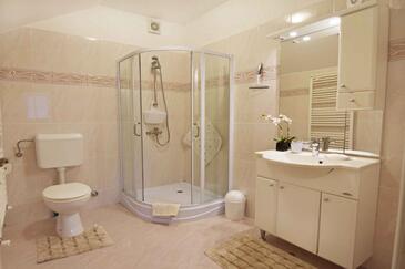 Appartamento può accogliere 5 ospiti. I letti sono disposti nelle camere da letto che sono 2, su 46m2. Gli ospiti hanno a disposizione il proprio terrazzo per godere nelle calde serate estive. Per il piacere totale e il relax c'è il barbecue privato solo per gli ospiti di quest'alloggio. Nell'unità di alloggio si possono portare gli animali domestici con un pagamento supplementare.