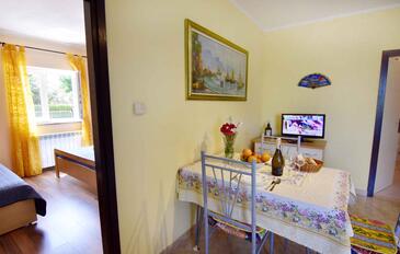 Appartamento può accogliere 5 ospiti. I letti sono disposti nelle camere da letto che sono 2, su 46m2. Gli ospiti hanno a disposizione il proprio terrazzo per godere nelle calde serate estive. Per il piacere totale e il relax c'è il barbecue privato solo per gli ospiti di quest'alloggio. Nell'unità di alloggio si possono portare gli animali domestici con un pagamento supplementare.