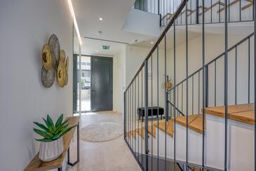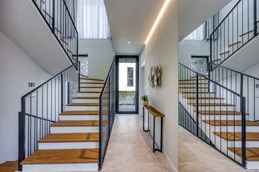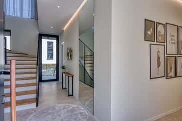 Casa può accogliere 8 ospiti. I letti sono disposti nelle camere da letto che sono 3, e nella camera di soggiorno, su 186m2. Gli ospiti hanno a disposizione il proprio terrazzo per godere nelle calde serate estive. Dalla casa si gode di una vista sul mare. Durante il soggiorno gli ospiti possono utilizzare la piscina comune.