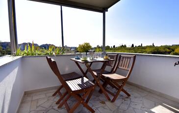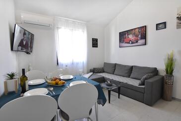 Appartamento può accogliere 4 ospiti. I letti sono disposti nelle camere da letto che sono 2, su 43m2. Gli ospiti hanno a disposizione il proprio terrazzo per godere nelle calde serate estive. Si può preparare il cibo utilizzando il barbecue comune.