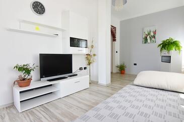 Appartamento può accogliere 6 ospiti. I letti sono disposti nelle camere da letto che sono 2, e nella camera di soggiorno, su 68m2. Gli ospiti hanno a disposizione il proprio terrazzo per godere nelle calde serate estive. Si può preparare il cibo utilizzando il barbecue comune.
