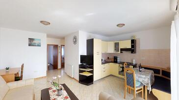 Appartamento può accogliere 6 ospiti. I letti sono disposti nelle camere da letto che sono 2, e nella camera di soggiorno, su 55m2. Gli ospiti hanno a disposizione il proprio terrazzo per godere nelle calde serate estive. Si può preparare il cibo utilizzando il barbecue comune.