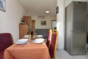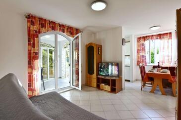 Appartamento può accogliere 4 ospiti. I letti sono disposti nelle camere da letto che sono 2, su 60m2. Gli ospiti hanno a disposizione il proprio terrazzo per godere nelle calde serate estive. Si può preparare il cibo utilizzando il barbecue comune. Nell'unità di alloggio si possono portare gli animali domestici con un pagamento supplementare.