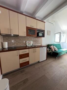 Monolocale può accogliere 3 ospiti. I letti sono disposti nelle camere da letto che sono 1, su 28m2. Gli ospiti hanno a disposizione il proprio terrazzo per godere nelle calde serate estive. Dal monolocale si gode di una vista sul mare. Si può preparare il cibo utilizzando il barbecue comune.