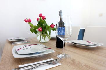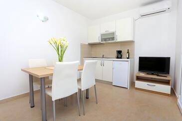 Appartamento può accogliere 5 ospiti. I letti sono disposti nelle camere da letto che sono 1, e nella camera di soggiorno, su 39m2. Gli ospiti hanno a disposizione il proprio terrazzo per godere nelle calde serate estive. Dall'appartamento si gode di una vista sul mare.