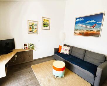 Appartamento può accogliere 4 ospiti. I letti sono disposti nelle camere da letto che sono 1, e nella camera di soggiorno, su 31m2. Gli ospiti hanno a disposizione il proprio balcone per godere delle calde serate estive. Dall'appartamento si gode di una vista sul mare. Si può preparare il cibo utilizzando il barbecue comune.