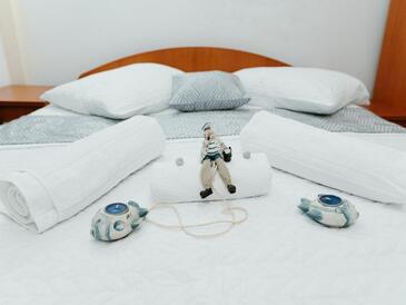 Appartamento può accogliere 3 ospiti. I letti sono disposti nelle camere da letto che sono 1, e nella camera di soggiorno, su 35m2. Gli ospiti hanno a disposizione il proprio terrazzo per godere nelle calde serate estive. Dall'appartamento si gode di una vista sul mare. Si può preparare il cibo utilizzando il barbecue comune. Nell'unità di alloggio si possono portare gli animali domestici con un pagamento supplementare.
