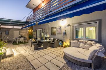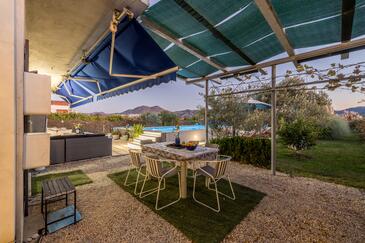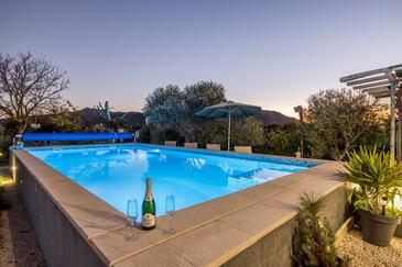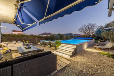 Casa può accogliere 7 ospiti. I letti sono disposti nelle camere da letto che sono 4, su 128m2. Gli ospiti hanno a disposizione il proprio terrazzo per godere nelle calde serate estive. Per il piacere totale e il relax c'è il barbecue privato solo per gli ospiti di quest'alloggio. Durante il soggiorno gli ospiti si possono rilassare nella piscina privata. Nell'unità di alloggio si possono portare gli animali domestici senza alcun pagamento supplementare.