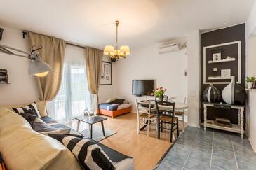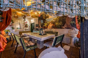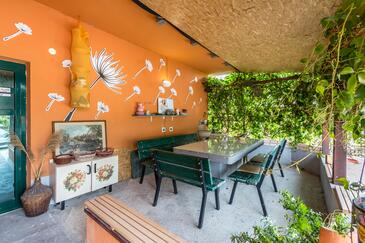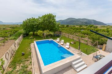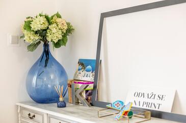 Casa può accogliere 7 ospiti. I letti sono disposti nelle camere da letto che sono 4, su 128m2. Gli ospiti hanno a disposizione il proprio terrazzo per godere nelle calde serate estive. Per il piacere totale e il relax c'è il barbecue privato solo per gli ospiti di quest'alloggio. Durante il soggiorno gli ospiti si possono rilassare nella piscina privata. Nell'unità di alloggio si possono portare gli animali domestici senza alcun pagamento supplementare.
