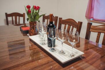 Casa può accogliere 8 ospiti. I letti sono disposti nelle camere da letto che sono 3, e nella camera di soggiorno, su 102m2. Gli ospiti hanno a disposizione il proprio terrazzo per godere nelle calde serate estive. Si può preparare il cibo utilizzando il barbecue comune. Nell'unità di alloggio si possono portare gli animali domestici senza alcun pagamento supplementare.