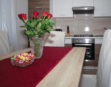 Appartamento può accogliere 6 ospiti. I letti sono disposti nelle camere da letto che sono 2, e nella camera di soggiorno, su 78m2. Gli ospiti hanno a disposizione il proprio terrazzo per godere nelle calde serate estive. Per il piacere totale e il relax c'è il barbecue privato solo per gli ospiti di quest'alloggio.