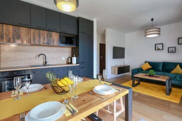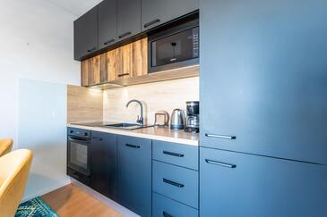 Appartamento può accogliere 4 ospiti. I letti sono disposti nelle camere da letto che sono 1, e nella camera di soggiorno, su 43m2. Gli ospiti hanno a disposizione il proprio terrazzo per godere nelle calde serate estive. Dall'appartamento si gode di una vista sul mare. Si può preparare il cibo utilizzando il barbecue comune.