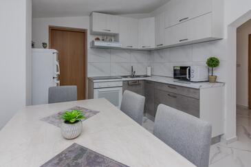 Appartamento può accogliere 6 ospiti. I letti sono disposti nelle camere da letto che sono 3, su 49m2. Gli ospiti hanno a disposizione il proprio terrazzo per godere nelle calde serate estive. Si può preparare il cibo utilizzando il barbecue comune.