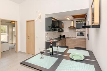Casa può accogliere 5 ospiti. I letti sono disposti nelle camere da letto che sono 2, e nella camera di soggiorno, su 60m2. Gli ospiti hanno a disposizione il proprio terrazzo per godere nelle calde serate estive. Per il piacere totale e il relax c'è il barbecue privato solo per gli ospiti di quest'alloggio. Durante il soggiorno gli ospiti si possono rilassare nella piscina privata. Nell'unità di alloggio si possono portare gli animali domestici con un pagamento supplementare.