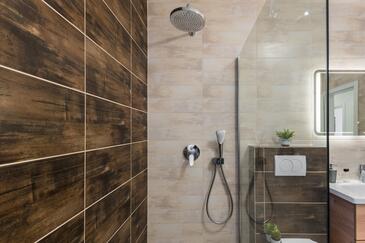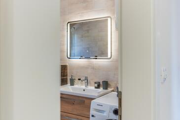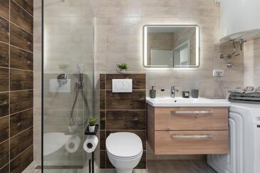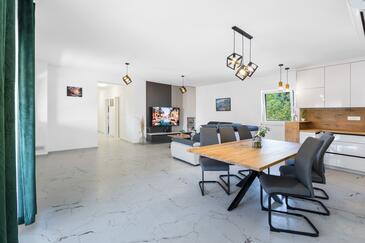 Casa può accogliere 6 ospiti. I letti sono disposti nelle camere da letto che sono 3, su 125m2. Gli ospiti hanno a disposizione il proprio terrazzo per godere nelle calde serate estive. Per il piacere totale e il relax c'è il barbecue privato solo per gli ospiti di quest'alloggio. Durante il soggiorno gli ospiti possono utilizzare la piscina comune.