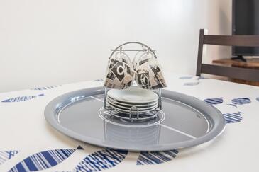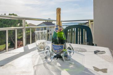 Appartamento può accogliere 6 ospiti. I letti sono disposti nelle camere da letto che sono 2, e nella camera di soggiorno, su 65m2. Gli ospiti hanno a disposizione il proprio balcone per godere delle calde serate estive. Dall'appartamento si gode di una vista sul mare. Si può preparare il cibo utilizzando il barbecue comune.