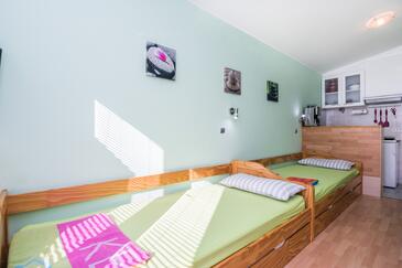 Appartamento può accogliere 4 ospiti. I letti sono disposti nelle camere da letto che sono 1, e nella camera di soggiorno, su 40m2. Gli ospiti hanno a disposizione il proprio balcone per godere delle calde serate estive. Si può preparare il cibo utilizzando il barbecue comune.