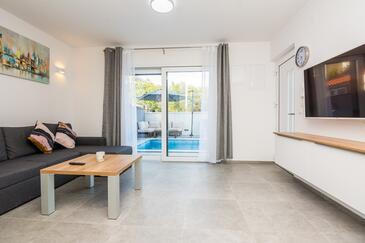 Appartamento può accogliere 6 ospiti. I letti sono disposti nelle camere da letto che sono 2, e nella camera di soggiorno, su 65m2. Gli ospiti hanno a disposizione il proprio terrazzo per godere nelle calde serate estive. Durante il soggiorno gli ospiti si possono rilassare nella piscina privata. Arrivati nell'unità d'alloggio i clienti devono pagare un deposito (il prezzo è indicato sul sito).