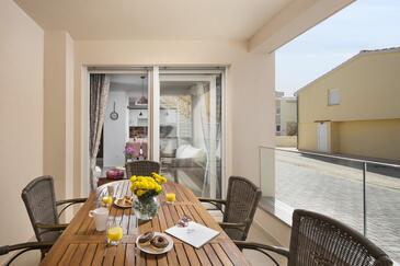 Appartamento può accogliere 4 ospiti. I letti sono disposti nelle camere da letto che sono 2, su 50m2. Gli ospiti hanno a disposizione il proprio terrazzo per godere nelle calde serate estive. Dall'appartamento si gode di una vista sul mare. Si può preparare il cibo utilizzando il barbecue comune.