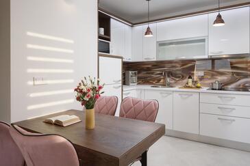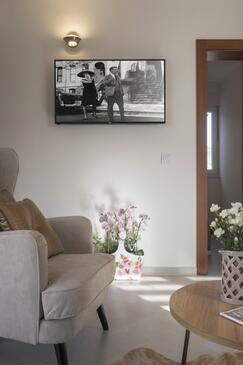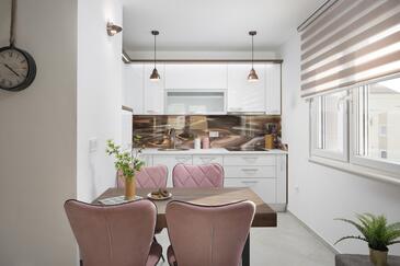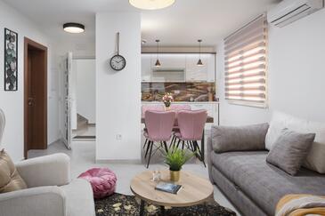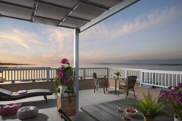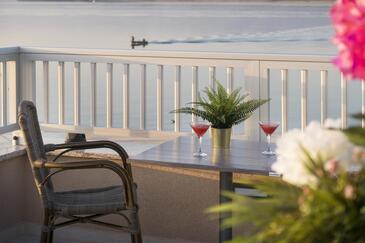 Appartamento può accogliere 4 ospiti. I letti sono disposti nelle camere da letto che sono 2, su 50m2. Gli ospiti hanno a disposizione il proprio terrazzo per godere nelle calde serate estive. Dall'appartamento si gode di una vista sul mare. Si può preparare il cibo utilizzando il barbecue comune.