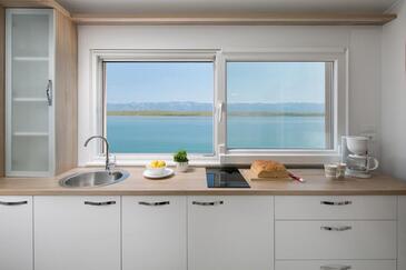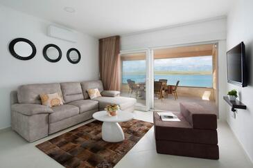 Appartamento può accogliere 6 ospiti. I letti sono disposti nelle camere da letto che sono 2, e nella camera di soggiorno, su 75m2. Gli ospiti hanno a disposizione il proprio terrazzo per godere nelle calde serate estive. Dall'appartamento si gode di una vista sul mare. Si può preparare il cibo utilizzando il barbecue comune.