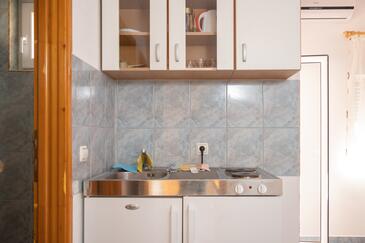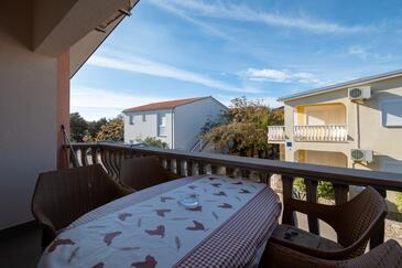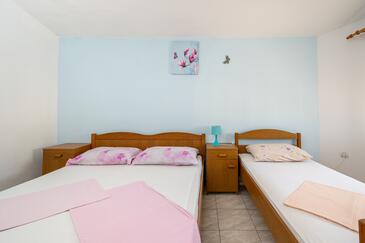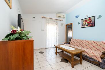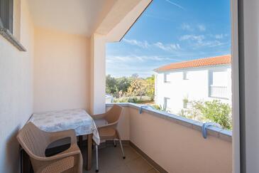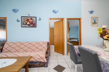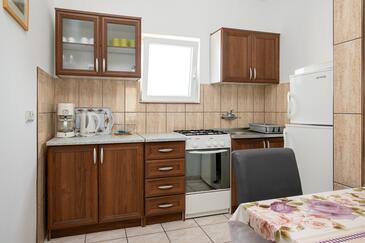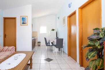 Appartamento può accogliere 5 ospiti. I letti sono disposti nelle camere da letto che sono 3, su 50m2. Gli ospiti hanno a disposizione il proprio terrazzo per godere nelle calde serate estive. Dall'appartamento si gode di una vista sul mare. Si può preparare il cibo utilizzando il barbecue comune.