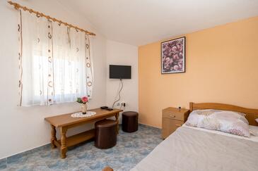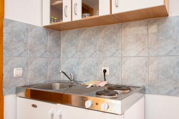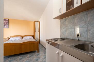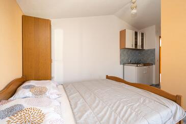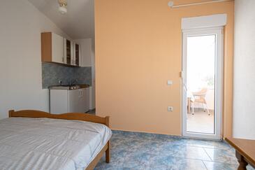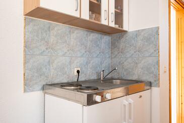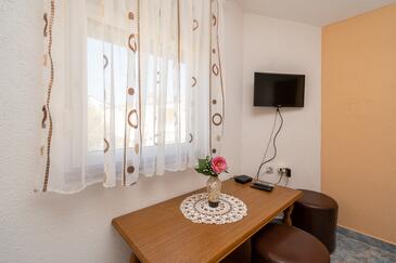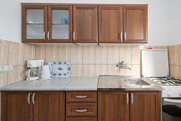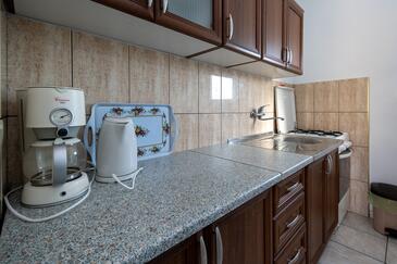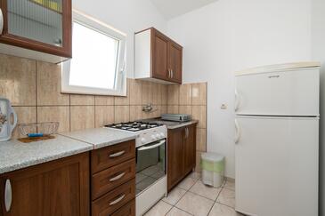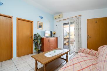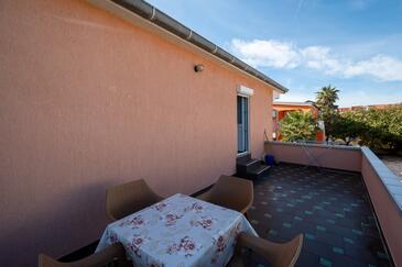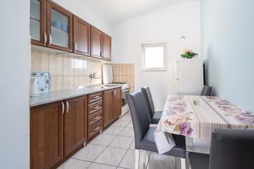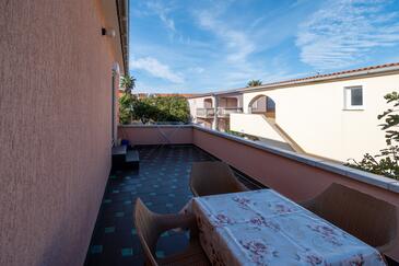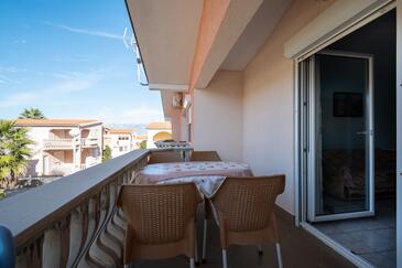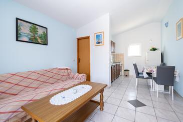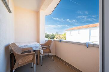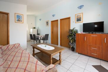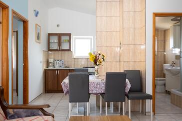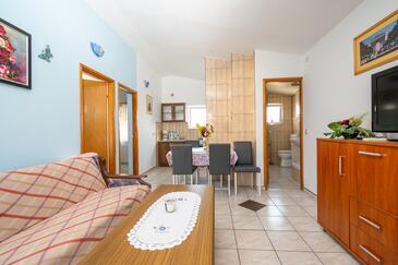 Appartamento può accogliere 5 ospiti. I letti sono disposti nelle camere da letto che sono 3, su 50m2. Gli ospiti hanno a disposizione il proprio terrazzo per godere nelle calde serate estive. Dall'appartamento si gode di una vista sul mare. Si può preparare il cibo utilizzando il barbecue comune.