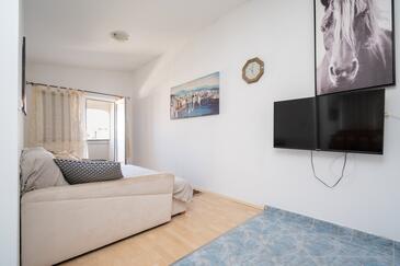 Appartamento può accogliere 4 ospiti. I letti sono disposti nelle camere da letto che sono 2, su 49m2. Gli ospiti hanno a disposizione il proprio terrazzo per godere nelle calde serate estive. Dall'appartamento si gode di una vista sul mare. Si può preparare il cibo utilizzando il barbecue comune.
