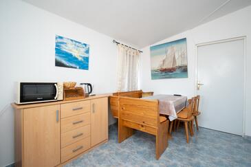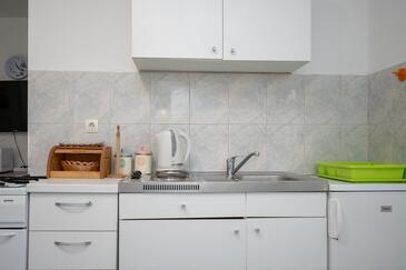 Appartamento può accogliere 4 ospiti. I letti sono disposti nelle camere da letto che sono 2, su 49m2. Gli ospiti hanno a disposizione il proprio terrazzo per godere nelle calde serate estive. Dall'appartamento si gode di una vista sul mare. Si può preparare il cibo utilizzando il barbecue comune.