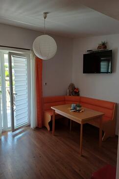 Appartamento può accogliere 4 ospiti. I letti sono disposti nelle camere da letto che sono 2, su 40m2. Gli ospiti hanno a disposizione il proprio terrazzo per godere nelle calde serate estive. Dall'appartamento si gode di una vista sul mare. Si può preparare il cibo utilizzando il barbecue comune.