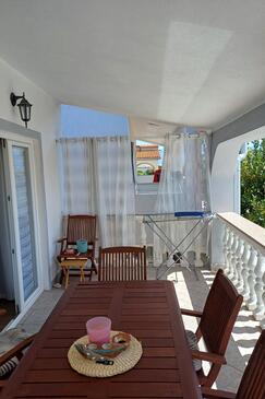 Appartamento può accogliere 4 ospiti. I letti sono disposti nelle camere da letto che sono 2, su 40m2. Gli ospiti hanno a disposizione il proprio terrazzo per godere nelle calde serate estive. Dall'appartamento si gode di una vista sul mare. Si può preparare il cibo utilizzando il barbecue comune.