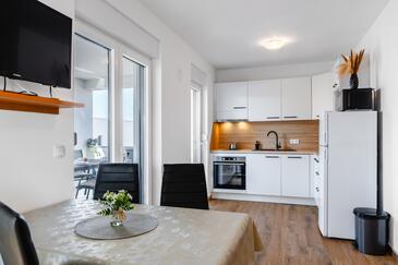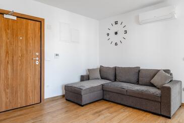 Appartamento può accogliere 5 ospiti. I letti sono disposti nelle camere da letto che sono 2, e nella camera di soggiorno, su 43m2. Gli ospiti hanno a disposizione il proprio terrazzo per godere nelle calde serate estive. Si può preparare il cibo utilizzando il barbecue comune.