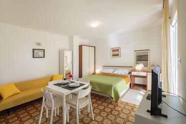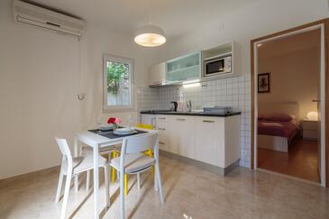 Appartamento può accogliere 2 ospiti. I letti sono disposti nelle camere da letto che sono 1, su 32m2. Gli ospiti hanno a disposizione il proprio terrazzo per godere nelle calde serate estive. Dall'appartamento si gode di una vista sul mare. Si può preparare il cibo utilizzando il barbecue comune. Altri clienti o proprietari passano per terrazzo dell'unità d'alloggio prenotata.