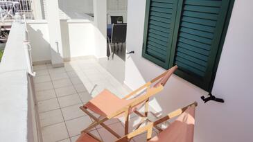 Appartamento può accogliere 4 ospiti. I letti sono disposti nelle camere da letto che sono 2, su 50m2. Gli ospiti hanno a disposizione il proprio terrazzo per godere nelle calde serate estive. Dall'appartamento si gode di una vista sul mare. Si può preparare il cibo utilizzando il barbecue comune.