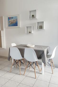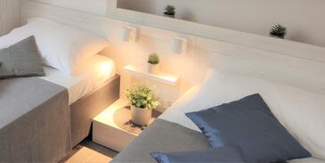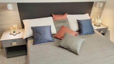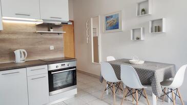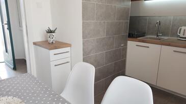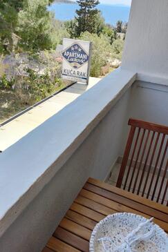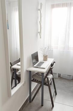 Appartamento può accogliere 4 ospiti. I letti sono disposti nelle camere da letto che sono 2, su 50m2. Gli ospiti hanno a disposizione il proprio terrazzo per godere nelle calde serate estive. Dall'appartamento si gode di una vista sul mare. Si può preparare il cibo utilizzando il barbecue comune.