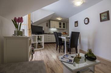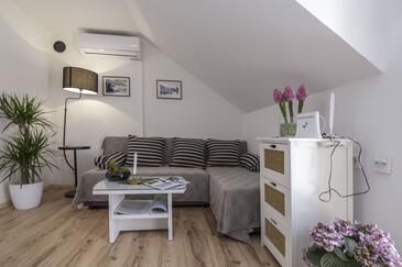 Casa può accogliere 4 ospiti. I letti sono disposti nelle camere da letto che sono 1, e nella camera di soggiorno, su 35m2. Gli ospiti hanno a disposizione il proprio terrazzo per godere nelle calde serate estive. Dalla casa si gode di una vista sul mare. Per il piacere totale e il relax c'è il barbecue privato solo per gli ospiti di quest'alloggio. Nell'unità di alloggio si possono portare gli animali domestici senza alcun pagamento supplementare.