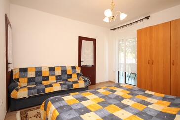 Appartamento può accogliere 5 ospiti. I letti sono disposti nelle camere da letto che sono 2, e nella camera di soggiorno, su 61m2. Gli ospiti hanno a disposizione il proprio terrazzo per godere nelle calde serate estive. Dall'appartamento si gode di una vista sul mare. Si può preparare il cibo utilizzando il barbecue comune.