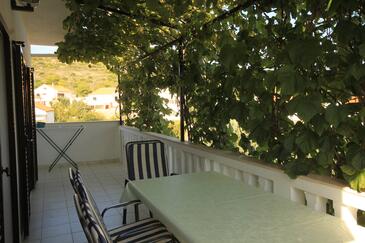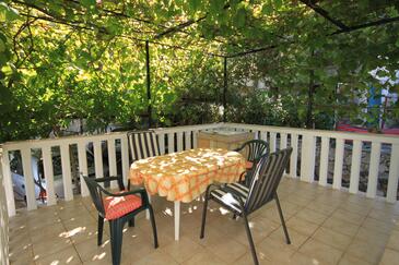 Appartamento può accogliere 5 ospiti. I letti sono disposti nelle camere da letto che sono 2, e nella camera di soggiorno, su 61m2. Gli ospiti hanno a disposizione il proprio terrazzo per godere nelle calde serate estive. Dall'appartamento si gode di una vista sul mare. Si può preparare il cibo utilizzando il barbecue comune.