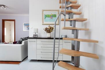 Appartamento può accogliere 6 ospiti. I letti sono disposti nelle camere da letto che sono 3, su 75m2. Gli ospiti hanno a disposizione il proprio terrazzo per godere nelle calde serate estive. Si può preparare il cibo utilizzando il barbecue comune.
