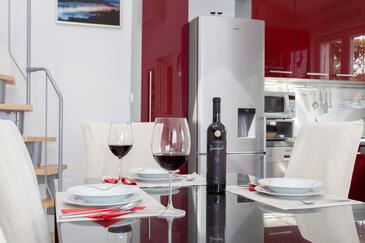 Appartamento può accogliere 6 ospiti. I letti sono disposti nelle camere da letto che sono 3, su 75m2. Gli ospiti hanno a disposizione il proprio terrazzo per godere nelle calde serate estive. Si può preparare il cibo utilizzando il barbecue comune.