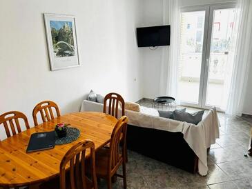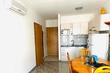 Appartamento può accogliere 4 ospiti. I letti sono disposti nelle camere da letto che sono 2, su 52m2. Gli ospiti hanno a disposizione il proprio terrazzo per godere nelle calde serate estive. Si può preparare il cibo utilizzando il barbecue comune.