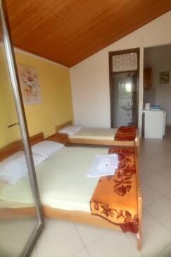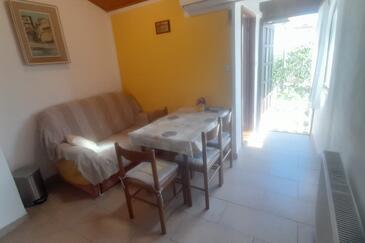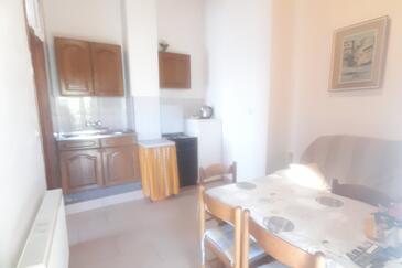 Appartamento può accogliere 4 ospiti. I letti sono disposti nelle camere da letto che sono 2, su 46m2. Gli ospiti hanno a disposizione il proprio terrazzo per godere nelle calde serate estive. Dall'appartamento si gode di una vista sul mare. Si può preparare il cibo utilizzando il barbecue comune.